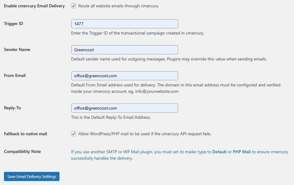 This feature routes all outgoing WordPress + WooCommerce emails through cmercury’s high-deliverability Transactional Email Engine.
