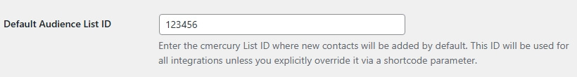 Default Audience List ID : Enter the List ID where all new contacts from WordPress forms should be saved.