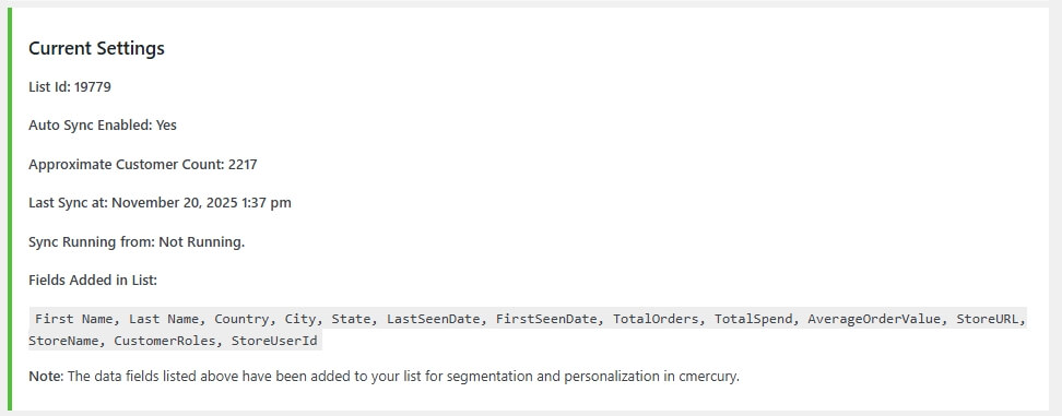 The sync runs in the background continuously, ensuring your cmercury audience is always up to date.